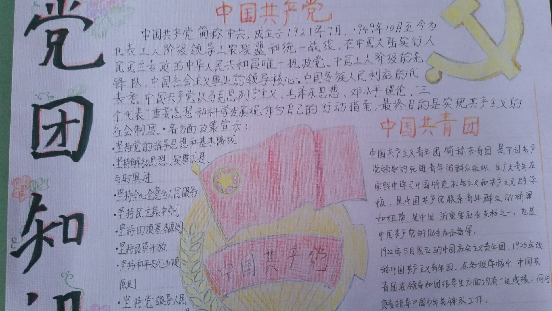 开展了“手绘党章团章接龙比赛,争做合格党员优秀团员”活动。