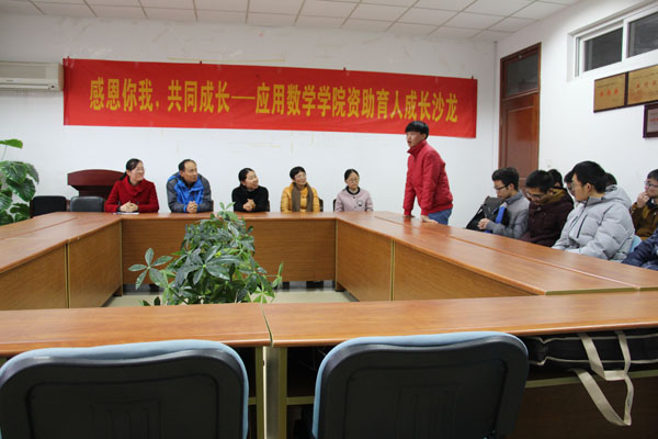 在仙林校区理工学科楼534会议室开展了“感恩你我,共同成长”资助育人成长沙龙感恩节主题活动。应用数学学党总支书记常根发、副书记张杰、辅导员卢艳梅、AG亚游