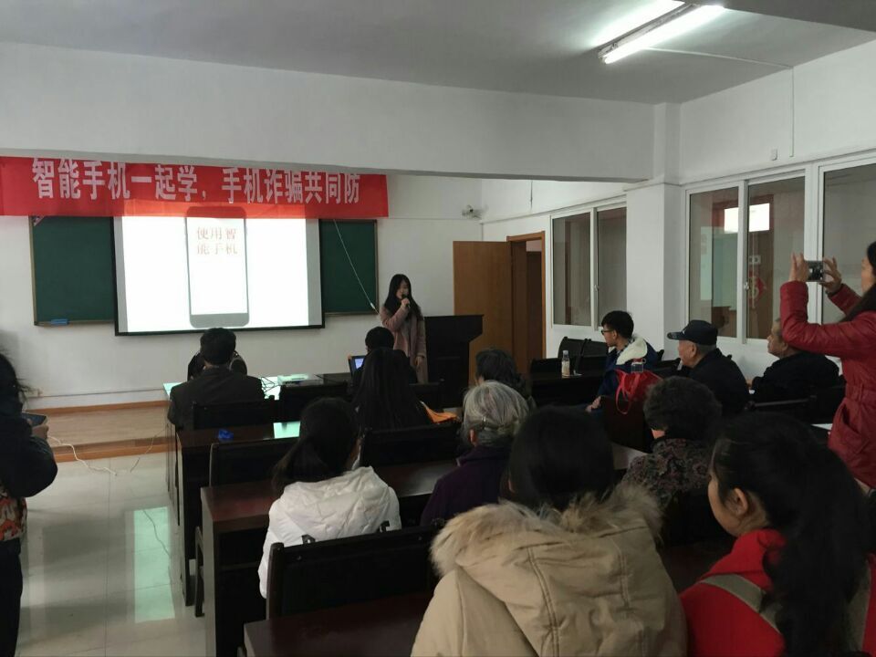 的学子走进姚坊门老年大学开展“智能手机一起学,手机诈骗共同防”的公益活动。此次活动主要教老年人如何使用智能手机以及如何预防手机诈骗。
