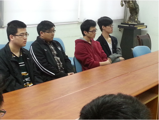张杰老师发言结束后由每一位同学分别介绍自己的个人情况。每一位同学都畅所欲言。目前11级毕业生里有11位同学准备积极备战考研,1位同学准备出国,老师就这些同学给出了一些建议,也为他们提供力所能及的帮助。另有8位同学正在积极找工作,老师也给这些同学提供了一些建议和督促,如在就业岗位上,刘喜鹏老师说AG亚游