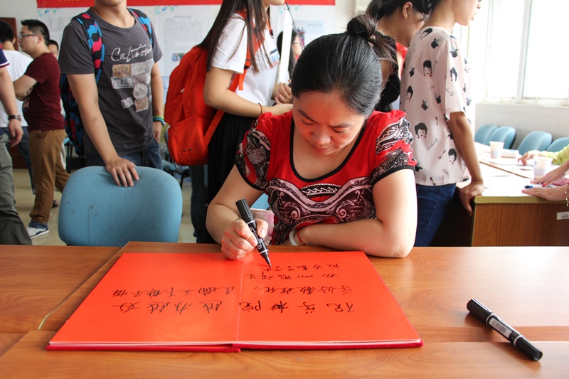接待处准备了签名留言薄,请新生家长为学校AG亚游