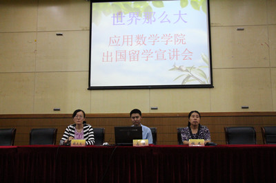 同时,马老师针对应用数学以及金融数学的专业特色,为同学们介绍了我校国际合作与交流的中长期项目,如英国的南安普顿大学,新西兰的梅西大学,澳大利亚的纽卡斯尔大学以及美国的圣约瑟夫大学的硕士项目等,并给同学们提出了合理建议。
