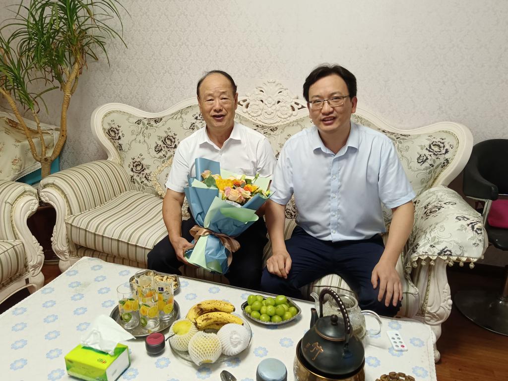 党总支书记殷建新和学生代表一行看望慰问生病教师、退休老领导及老教授,代表AG亚游
