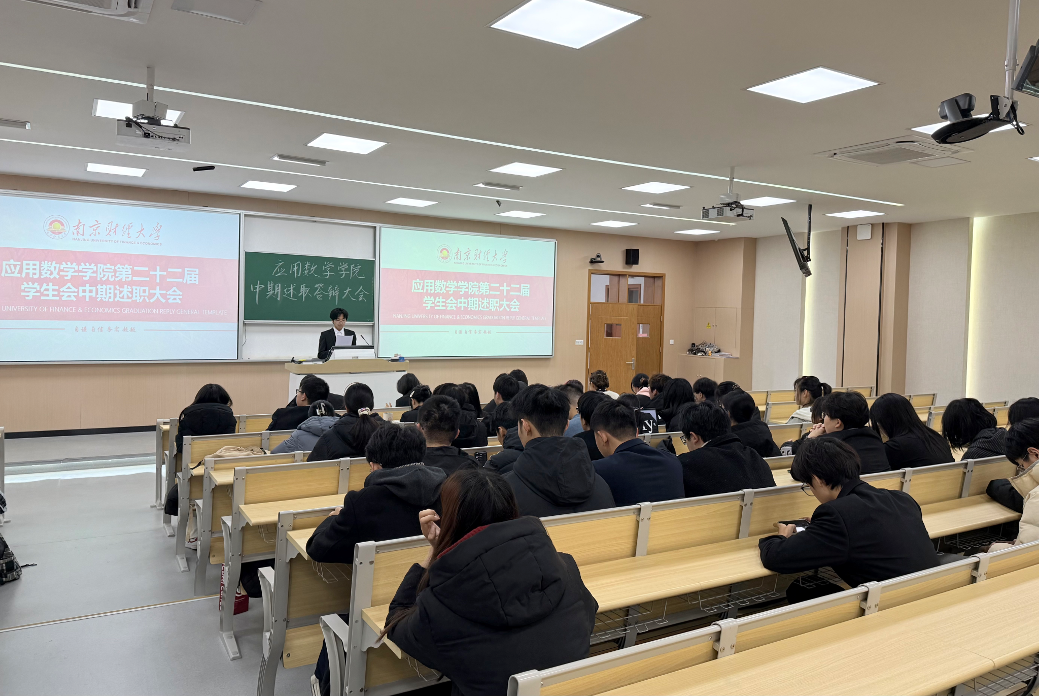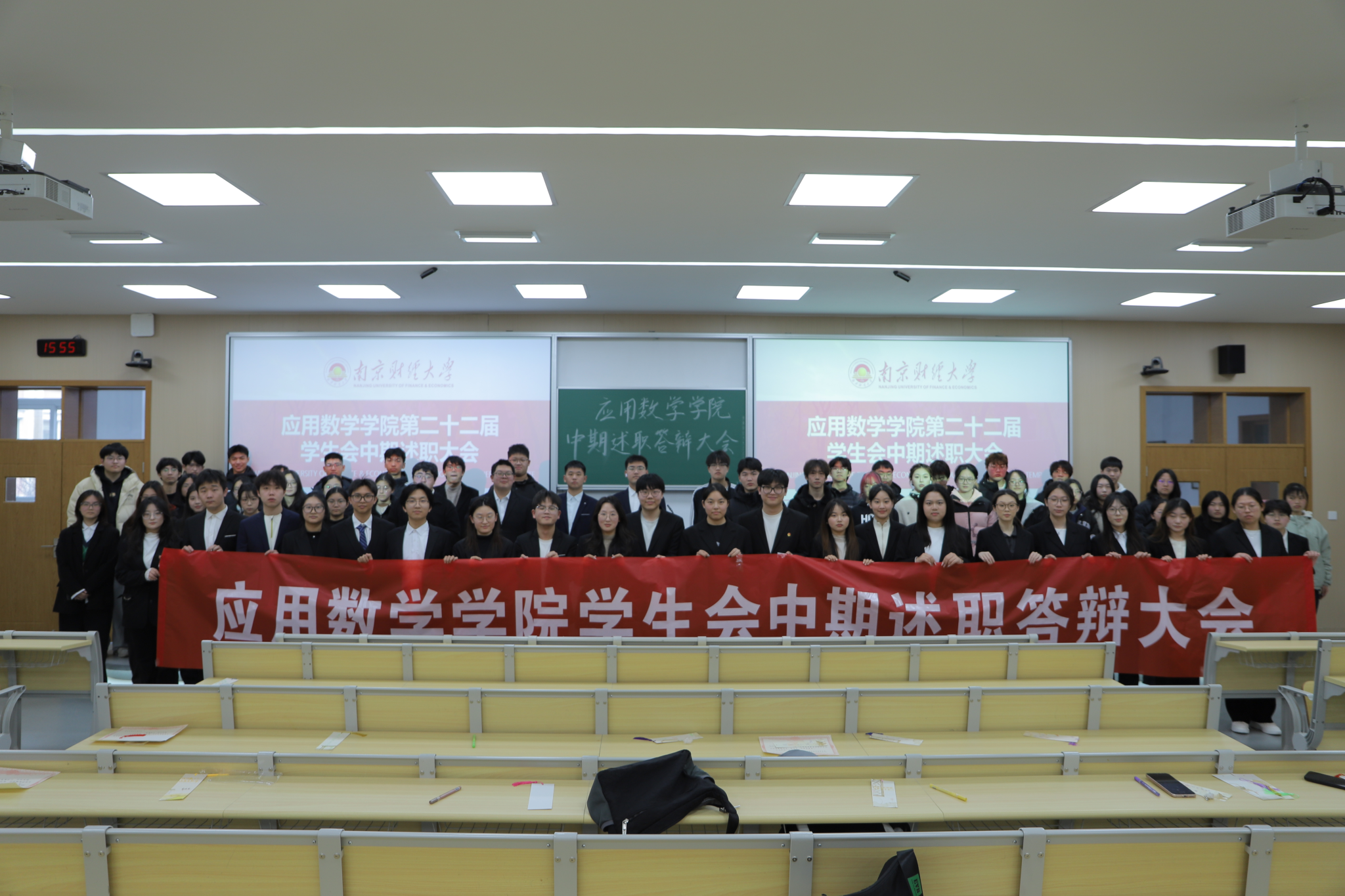 在仙林校区博观楼202教室召开第二十二届学生会中期述职答辩大会。本次大会由综合事务中心负责人方自然主持,院学生会全体成员参加。