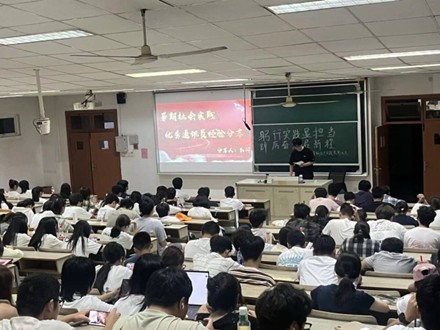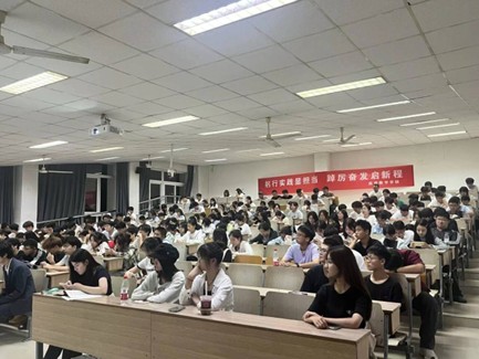 于仙林校区博远楼110教室召开以“躬行实践显担当,踔厉奋发启新程”为主题的2025年暑期社会实践表彰大会。优秀实践团队代表、2025级全体新生参会。