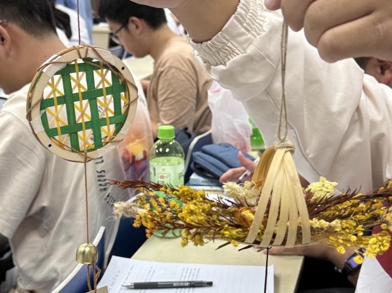 多个团支部以“探访非遗,增自信”为主题,通过“知识讲解+实践体验”的方式,让团员零距离感受中华优秀传统文化的魅力。金数2501团支部开展“非遗传承,青春接力”主题团课,团支书陆一带领团员深入了解南京云锦的历史与当代发展,通过“手工制作纸质云肩”实践,让团员们在穿针引线中体会匠人坚守;数学2501团支部书记邀请钱雨汶、刘嘉等同学分享浙江象山竹根雕、无锡惠山泥人、苏州昆曲的文化故事,带领团员亲手制作竹编风铃,在砍竹、破篾、编织的过程中,感受传统工艺的精妙与“祈福纳吉”的文化寓意。金数2502团支部在主题班会中,邀请江苏各地团员分享家乡非遗:南京云锦的华美、徐州剪纸的灵动、苏州昆曲的雅致……在交流中让团员们感受地方文化特色,增强对中华文脉的认同与自信。