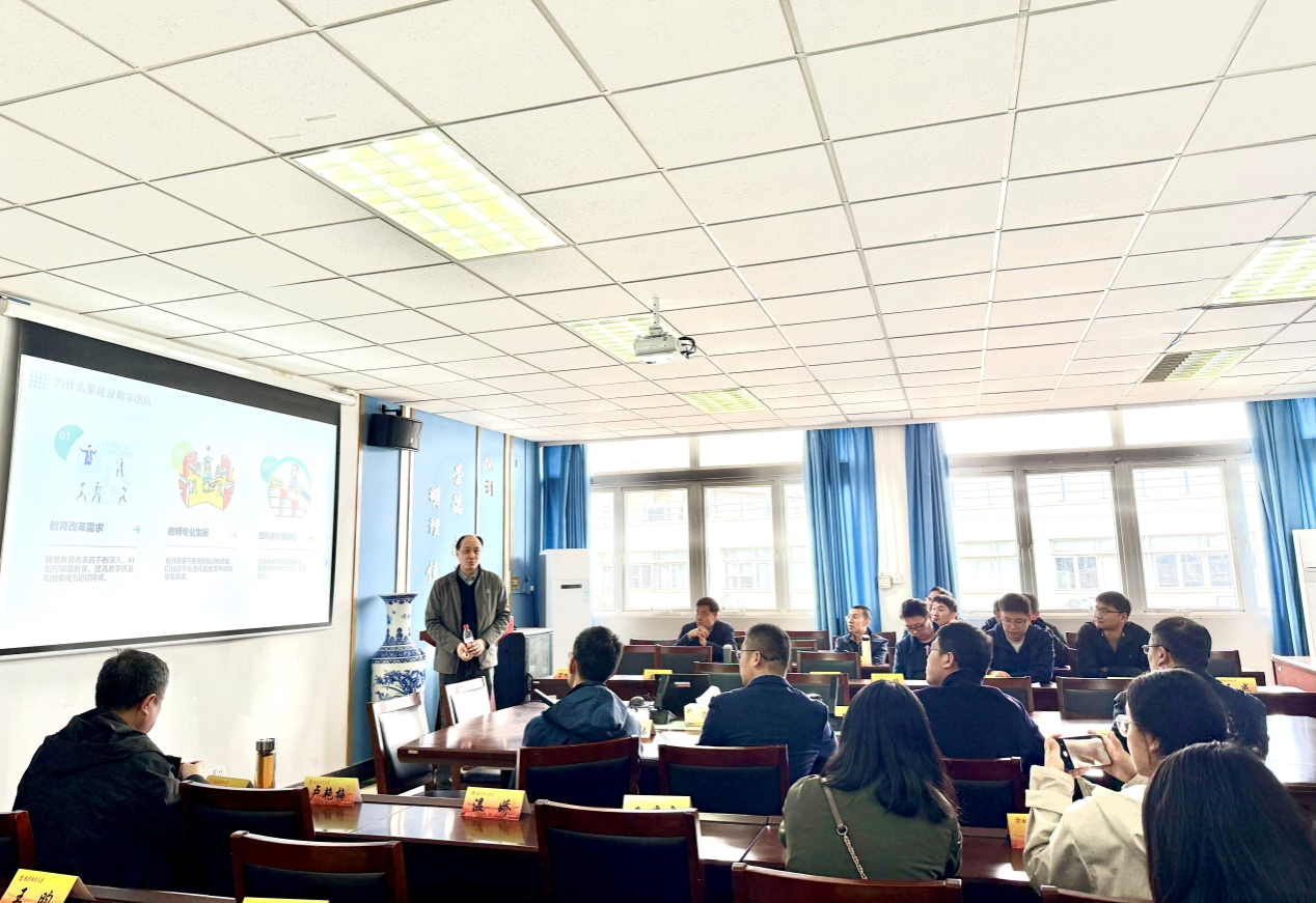 党委书记凌智教授作“双轮驱动、分类建设、AI赋能——高校数学教学团队一体化构建与实践”主题讲座。凌智教授围绕“数学课程教学团队建设与分类教学实践”展开深入讲解,系统介绍了教学团队建设的总体思路、分层教学组织架构及分类教学实施框架。他指出,团队建设应坚持“统筹规划、质量监控、资源协调”原则,构建分工明确、协同合作、老中青结合的合理梯队结构,并通过集体备课、教学研讨、听课评课等制度,促进教学经验交流与资源共建共享。