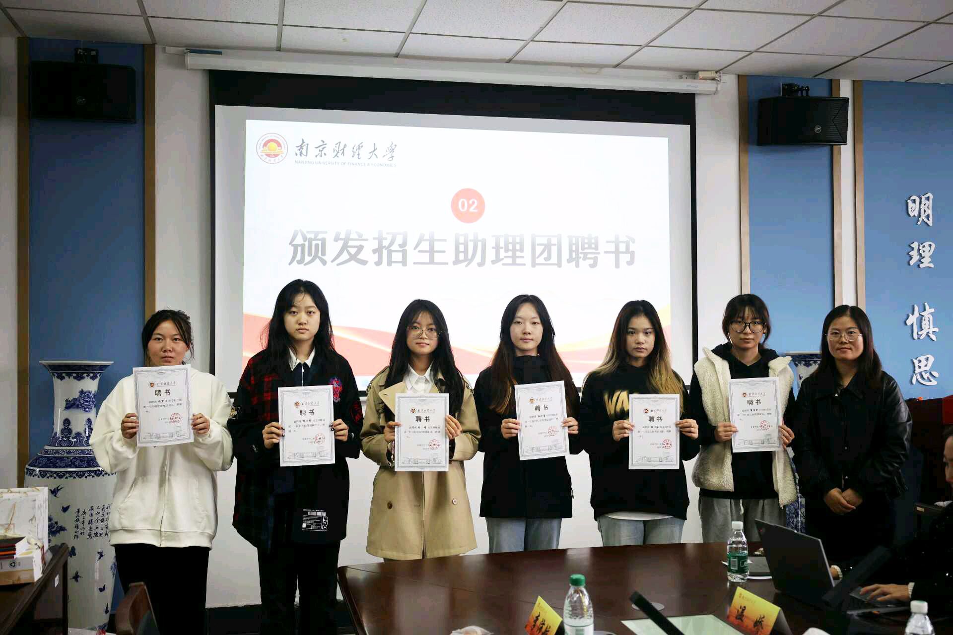 河北片区招生助理团团长周芯忆以乡情为纽带,号召大家发扬河北人“实在、吃苦耐劳、能扛事”的品格,共同推进片区招生工作;优秀团队代表顾佳凤分享了“母校行”实践经验,包括充分准备、真诚分享与持续互动,鼓励同学们积极参与“母校行”实践,通过讲述南财故事、展现学子风采,吸引优质生源,共同提升学校声誉与生源质量。